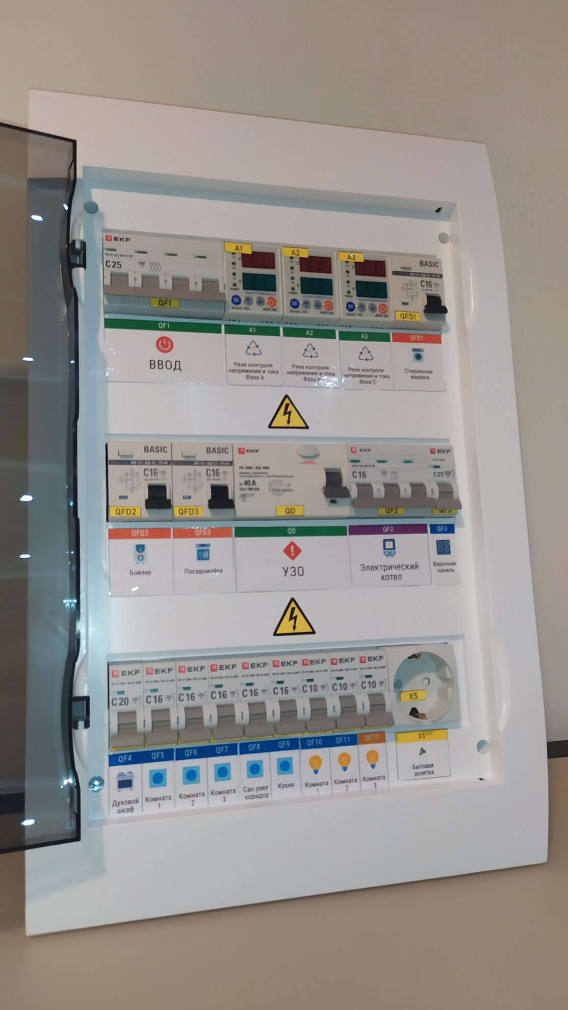 Готовый к установке электрощит встраиваемый в нишу на 36 модулей, 380В, на мощность не более 15 кВт. Предназначен для квартиры, дома или дачи. Установка в подготовленную нишу. Полностью подготовлен для подключения потребителей.