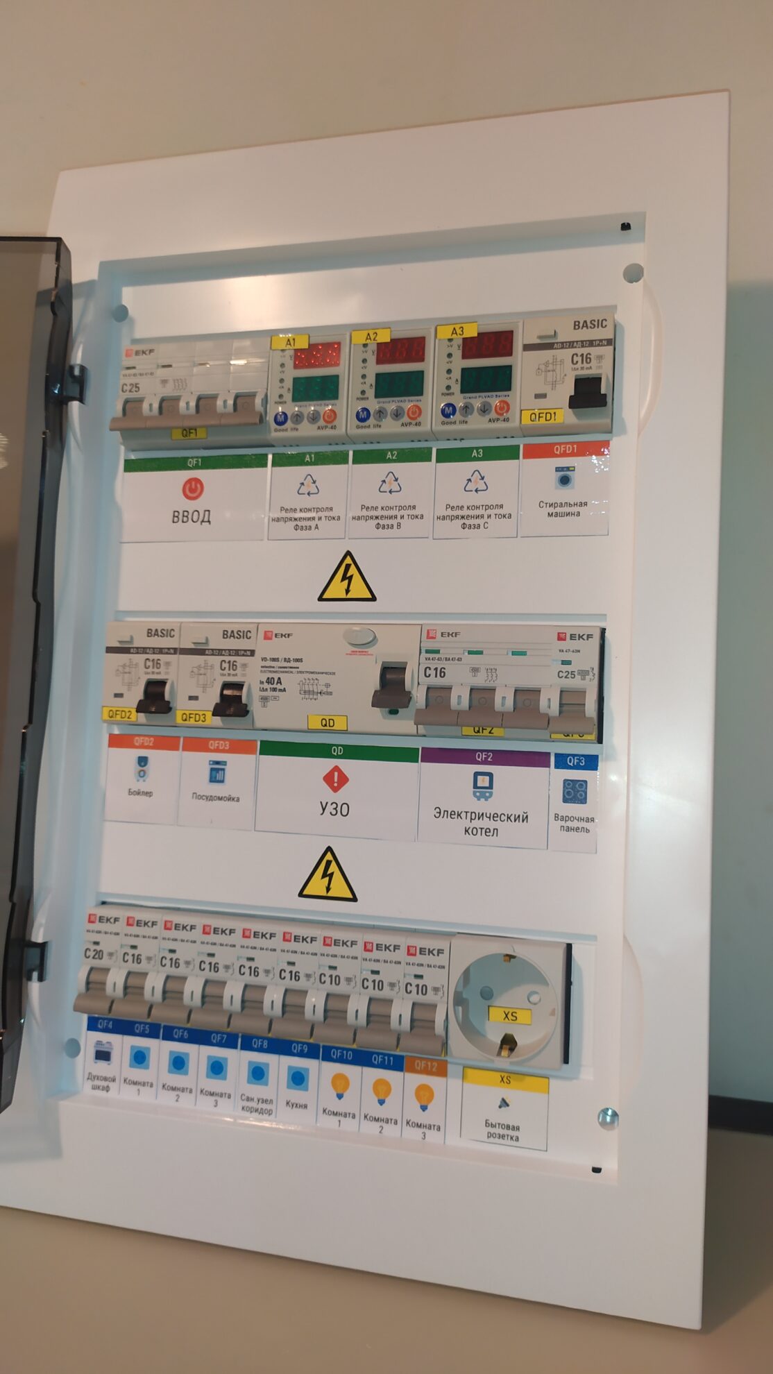 Реле контроля фаз 1Ф+N 40А — 3 шт;