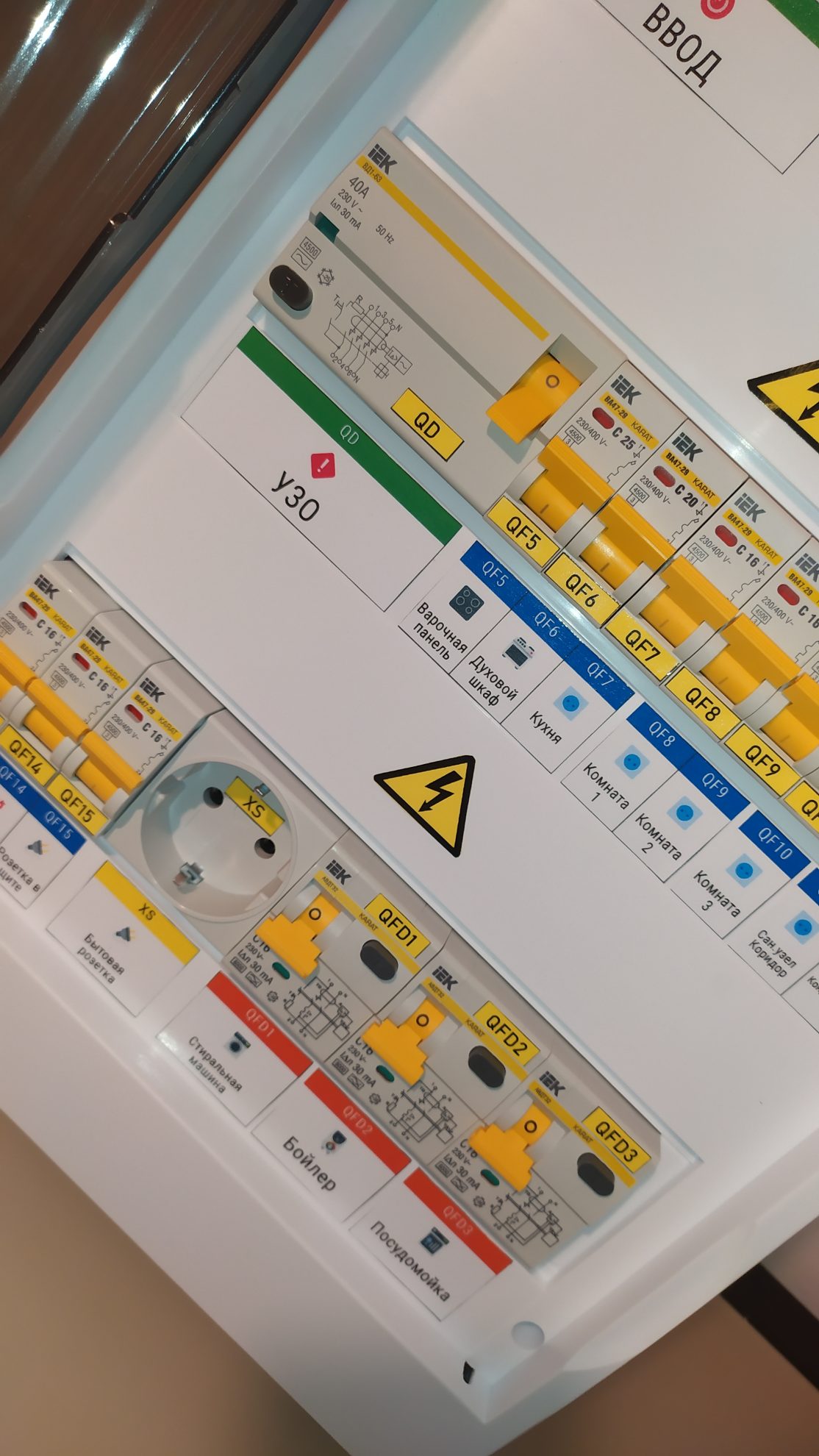 - Оборудование, установленное в щите производства ИЭК;