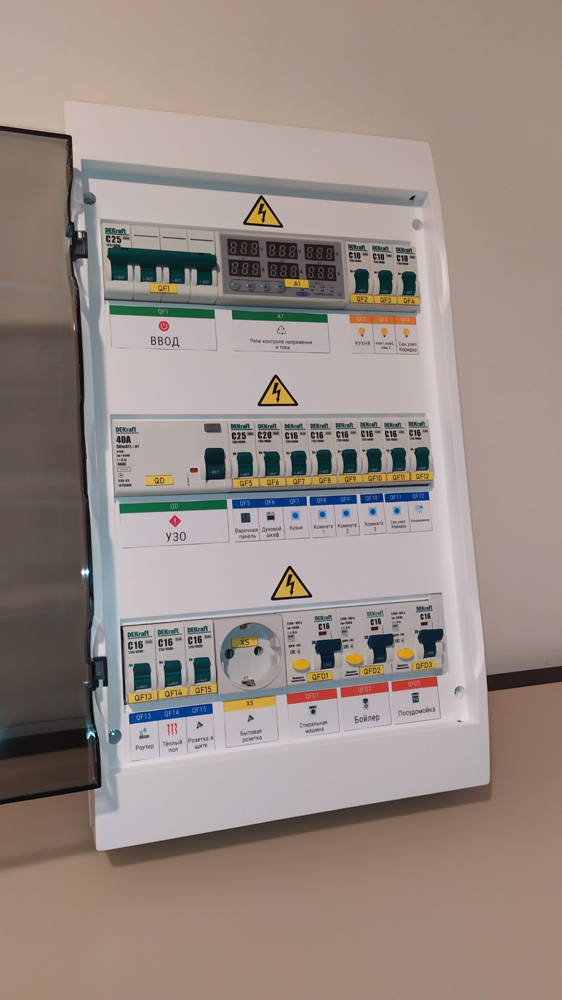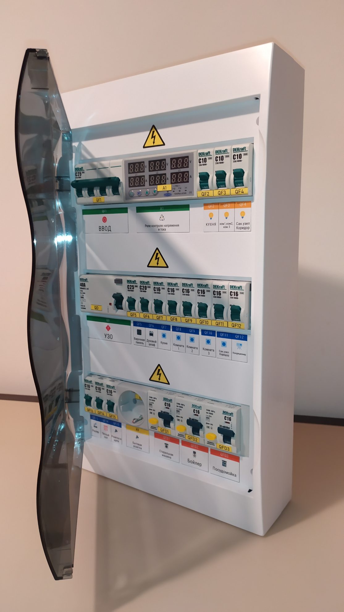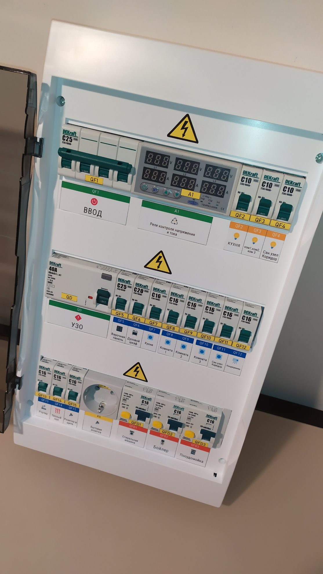 реле контроля напряжения и тока 3Ф 40А — 1 шт;