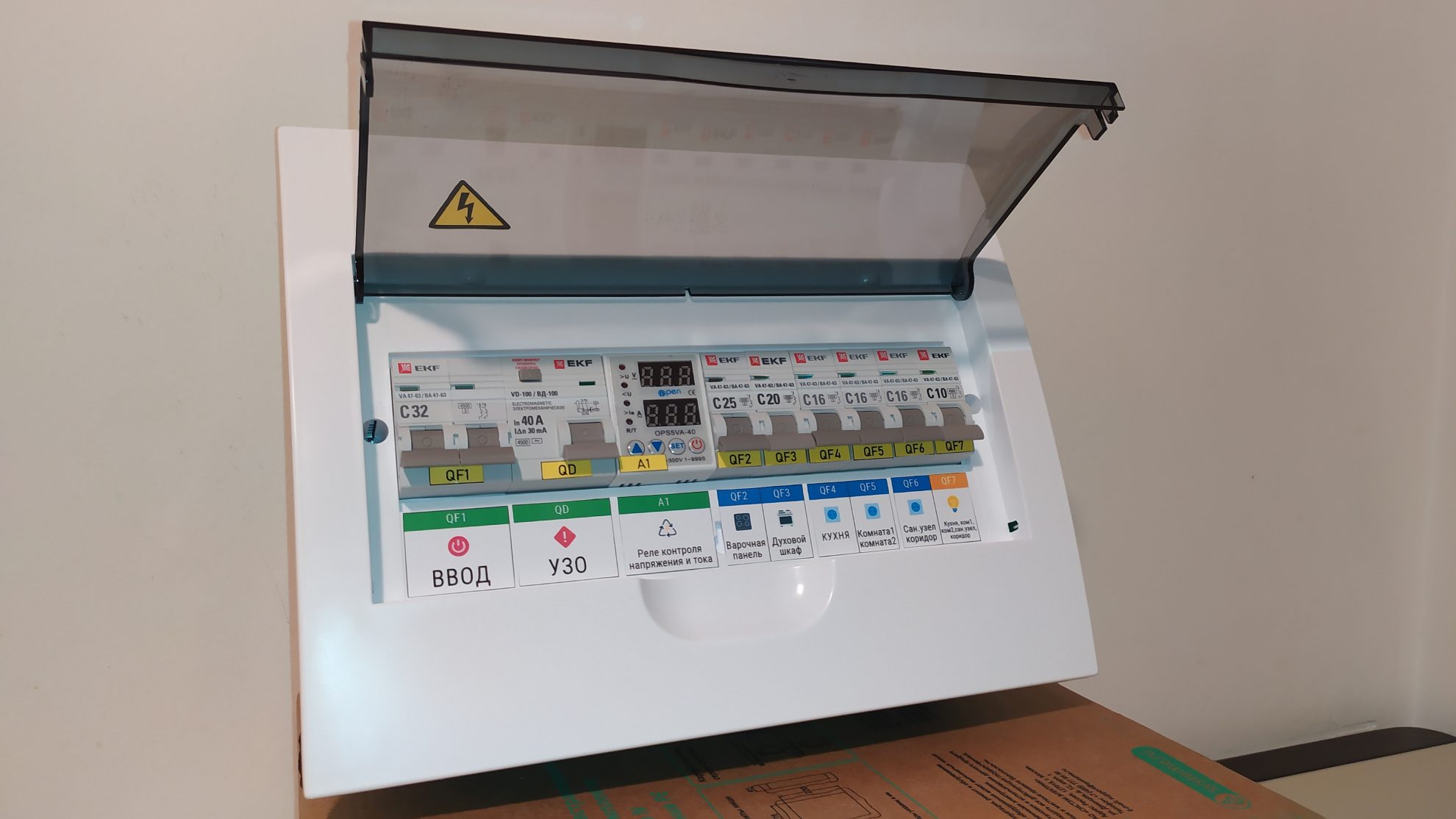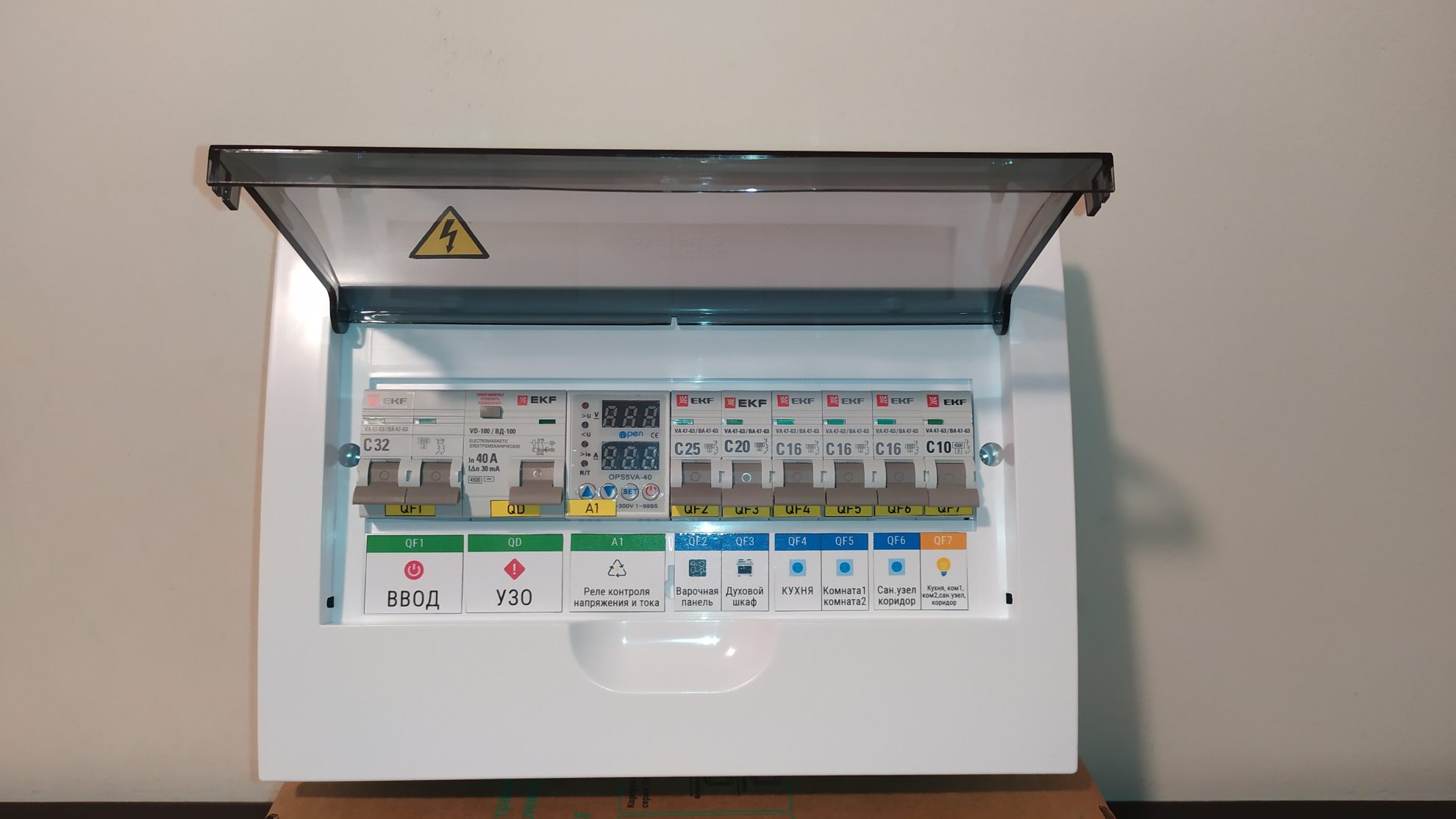 реле контроля напряжения и тока 2П 32А — 1 шт;