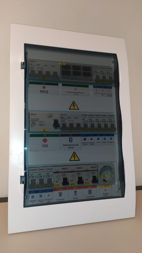 - Корпус щитка негорючий пластик, производитель Systeme Electric;