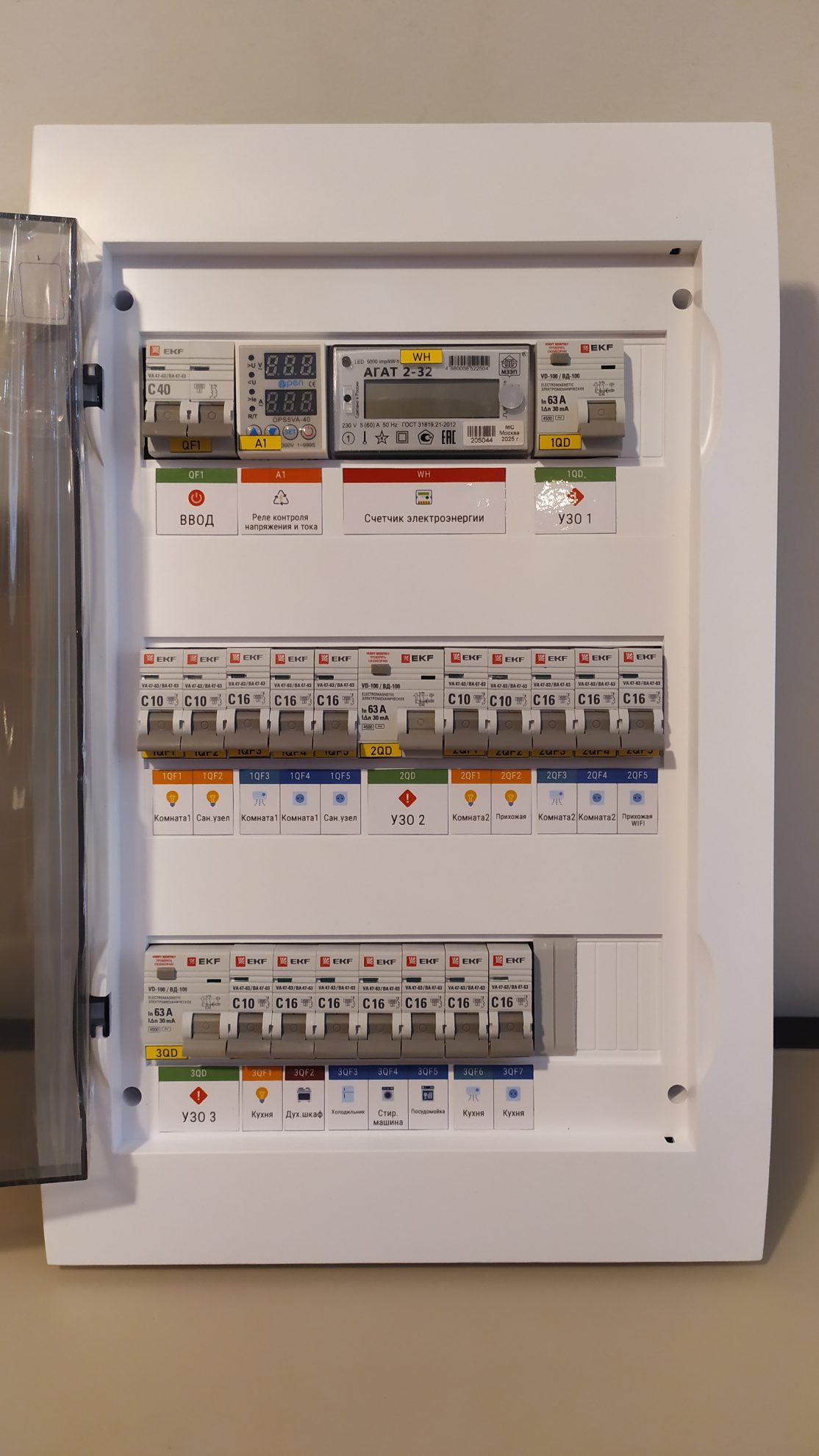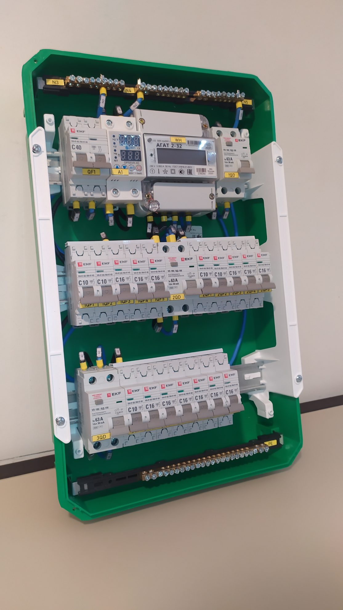 реле контроля фаз и тока 2П 40А — 1 шт;
