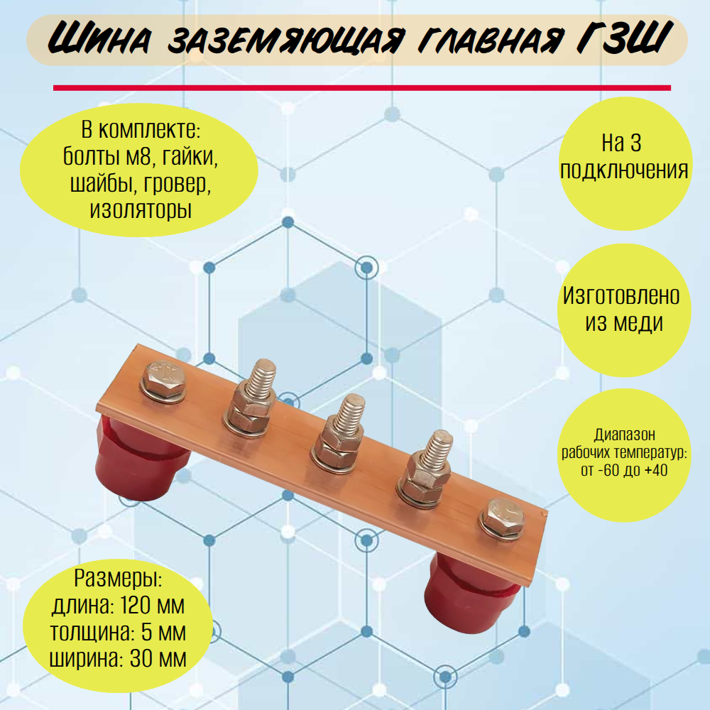 Шина заземляющая ГЗШ 120 х 30 х 5 мм предназначена для создания надежного заземления в электроустановках или помещении. Изготовленная из высококачественной меди, она обеспечивает низкое сопротивление и эффективную защиту от поражения электрическим током.